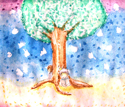 中間的樹我不斷用水彩筆點,點得很快樂XDDD(不過顏色太淡所以點了很久